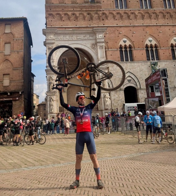 Il weekend da poco trascorso ha visto il Velo Club Vercelli presente e protagonista su 2 fronti. In primo piano Massimiliano Muraro, che a Siena ha partecipato alla Granfondo Strade Bianche, una delle più nobili e partecipate manifestazioni ciclistiche dedicate agli amatori (ben 8500 iscritti da tutto il mondo). Il giorno dopo la gara dei professionisti, sulle stesse strade che hanno visto il quarto trionfo di Tadej Pogacar, Muraro (alla prima partecipazione) ha completato il percorso lungo da 140 km e 2000 metri di dislivello (c’era anche l’opzione del medio da 87 km), con 42 km di sterrato, in 5 ore e 33 minuti alla media di 24 km/h. Proprio gli iconici tratti in sterrato rappresentano l’elemento caratterizzante di questa granfondo, che rende epica l’impresa di coloro che portano al traguardo la bici, soprattutto nel caso di fango e fondo bagnato, come è successo domenica a causa della pioggia caduta la notte precedente.
