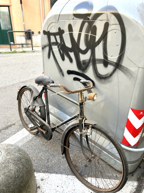 Ci eravamo lasciati con una lavatrice e un tavolo abbandonati. Ora, in via Santorre di Santarosa, in pieno centro a Vercelli, c’è chi – al lato dei cassonetti di plastica e vetro lascia una vecchia bicicletta.