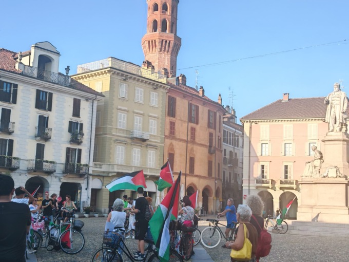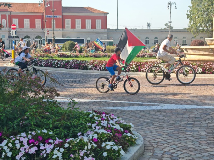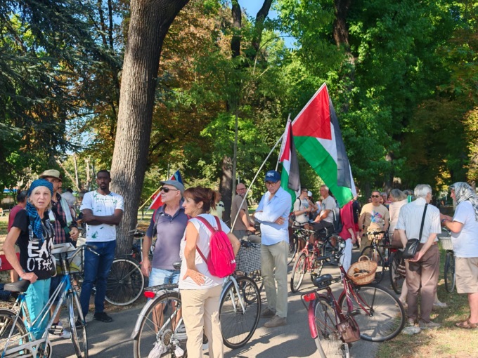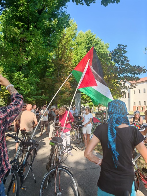 All’arrivo in piazza Cavour, Alessandro Jacassi, uno degli organizzatori della protesta in bicicletta, ha annunciato un’ulteriore manifestazione per Gaza il 13 settembre.
