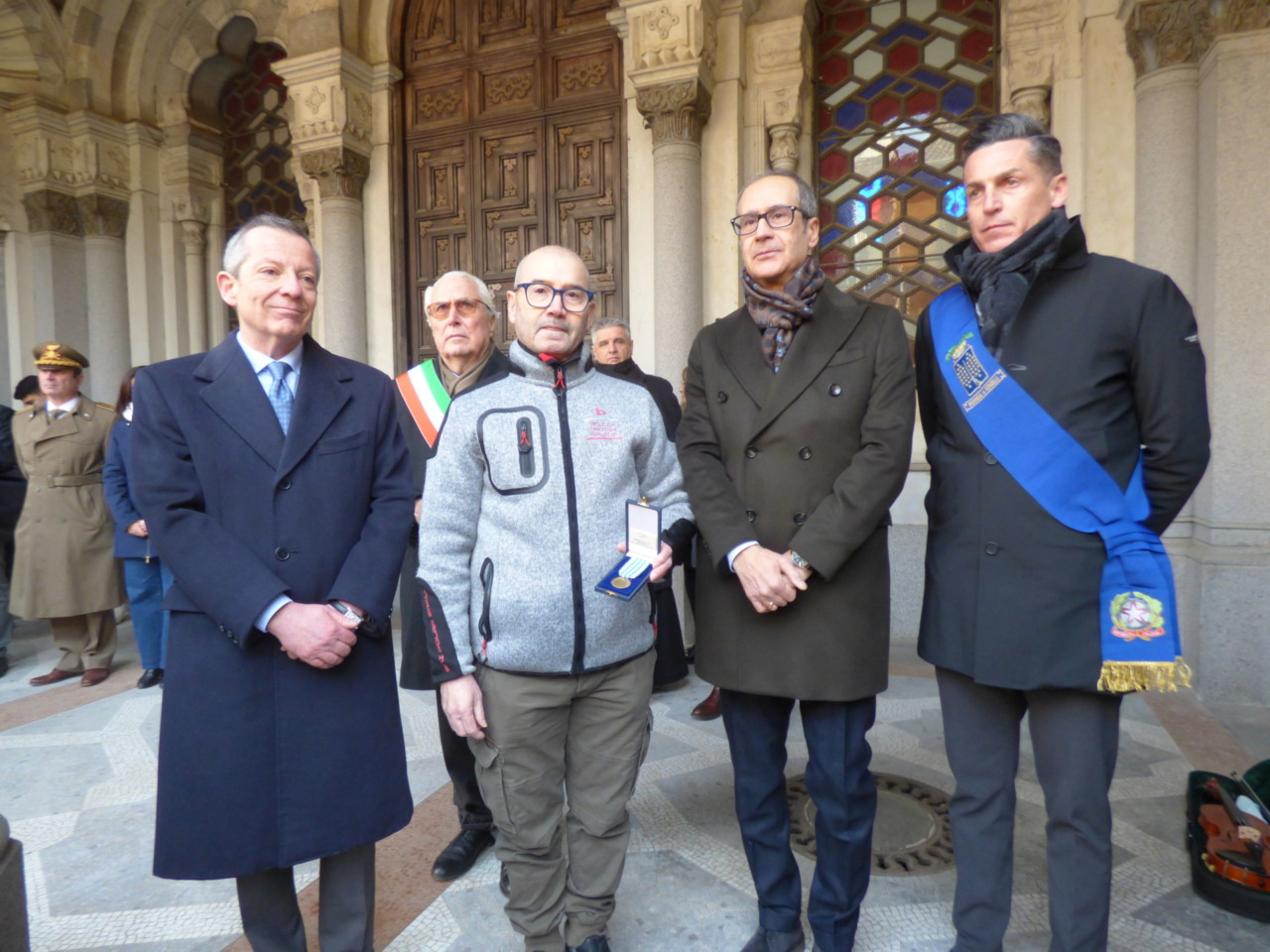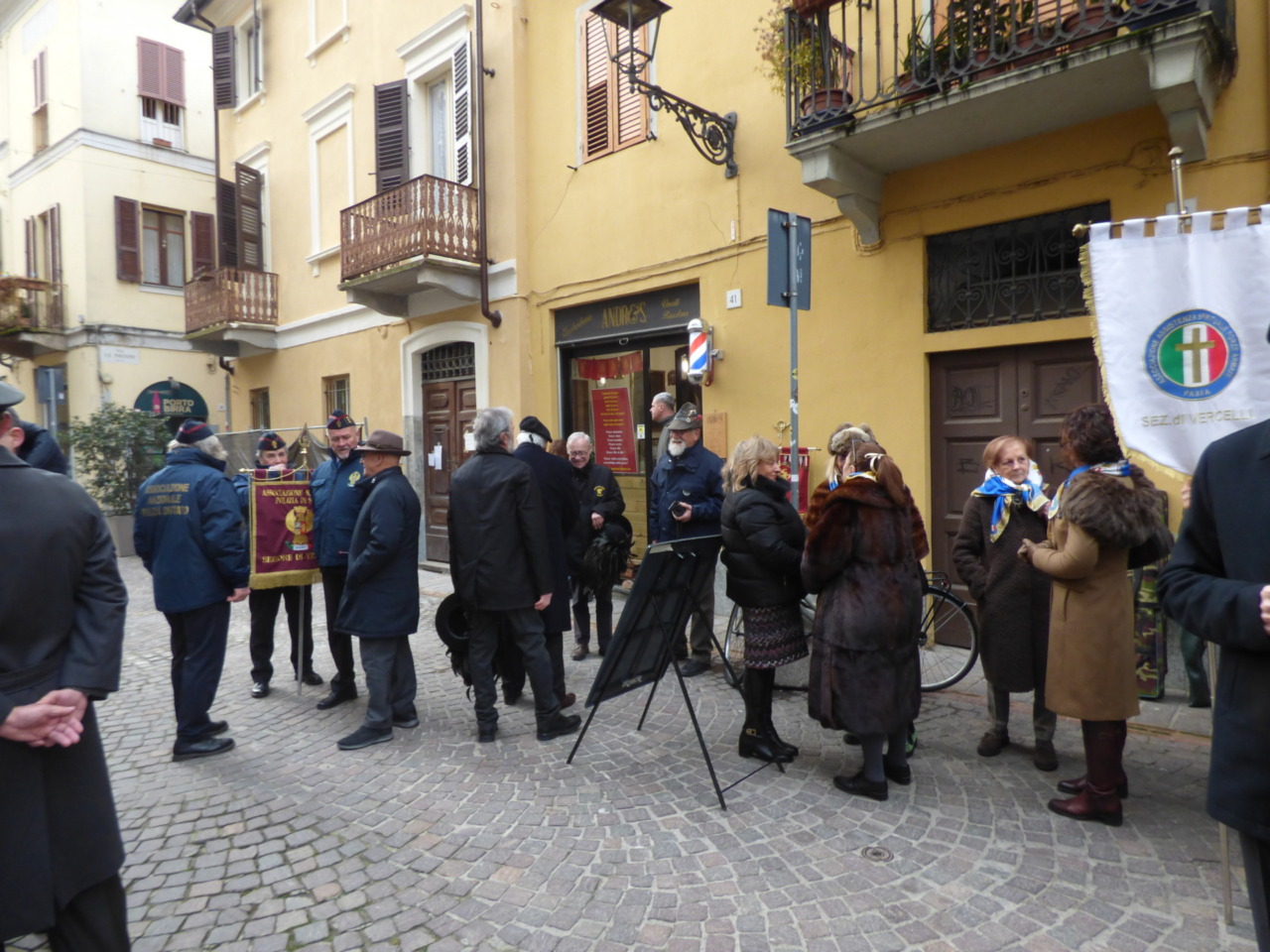 Dopo la deposizione della corona d’alloro sotto la lapide che ricorda le vittime vercellesi della Shoah, e la lettura dei nomi c’è stata la consegna da parte del Prefetto al figlio di Vasinton Barsanofio della medaglia d’onore dedicata alla memoria del padre che fu uno dei militari italiani internati nei lager.