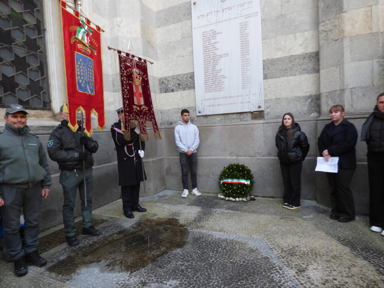 Ad accogliere i rappresentanti delle istituzioni è stato il rappresentante della Comunità Ebraica Paolo Zevi, per conto della presidente Rossella Bottini Treves, che era impegnata alla celebrazione di Biella. Zevi ha ringraziato tutti i presenti e le istituzioni per non far mai mancare il ricordo degli ebrei trucidati dai nazisti.