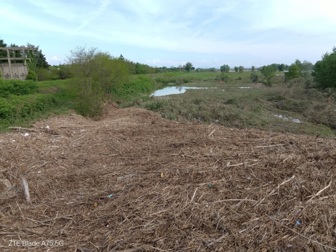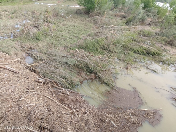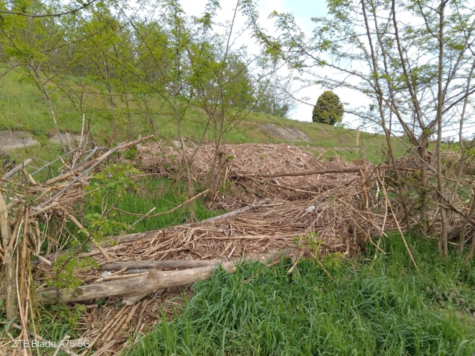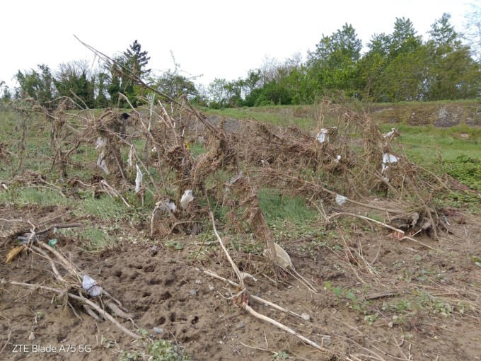A impressionare l’altezza della montagna di detriti ora che le acque si sono un po’ ritirate, in alcuni tratti dell’argine i detriti sono quasi allo stesso livello.