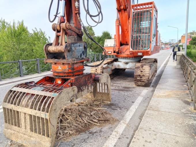 Sul ponte era presente un mezzo del cantiere, già in corso, per la pulizia delle arcate.