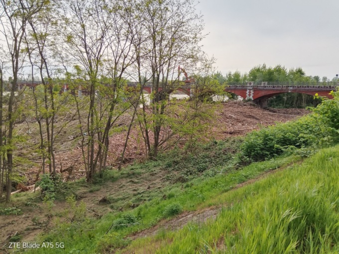 Una passeggiata oltre il ponte, argine in direzione del Parco Kockzak. Pone di fronte ad una vera foresta chesce tra la golena e i contrafforti dell’argine. Sono alberi di alto fusto, enormi, che pare abbiano retto bene alla piena. Ce ne sono anche di secchi che perà sembrano resistere.