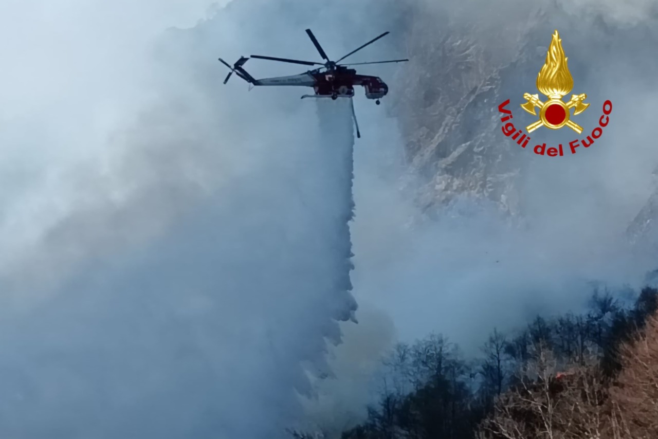 Sul posto è presente inoltre l’elicottero Erickson dei Vigili del Fuoco nominato “toro seduto”, l’elicottero regionale A.i.b, squadre volontarie dell’A.I.B. , Carabinieri e carabinieri forestali.