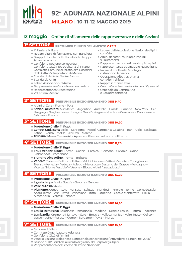 - Ore 18 saluto del sindaco di Milano e del presidente nazionale Ana a tutte le autorità, al Cdm e ai presidenti di sezione Ana in via Pantano