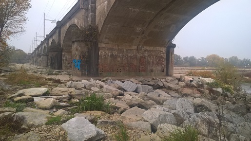 Sotto il ponte della ferrovia che attraversa il Sesia si passeggia con irrisoria facilità. E trovare rigagnoli d’acqua pare un miraggio. Si notano solo una decina scarsa di grossi acquitrini pieni di uccelli e pochissima corrente. Il livello è molto basso e rappresenta perfettamente la preoccupazione manifestata dagli addetti all’ambiente.
