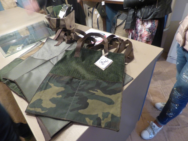 Shopper mimetici, zaini e borse con tessuti militari (forniti dalla ditta MMG della famiglia Mattiuzzo) e astucci con grafiche che richiamano l’epopea degli Alpini. Questi i prodotti che si potranno trovare specialmente sabato e domenica in due punti. Presso il laboratorio di San Pietro Martire dalle 9 alle 12,30 e dalle 15 e 19 e in via Nigra dalle 15 alle 24 il sabato e domenica dalle 9 alle 20.