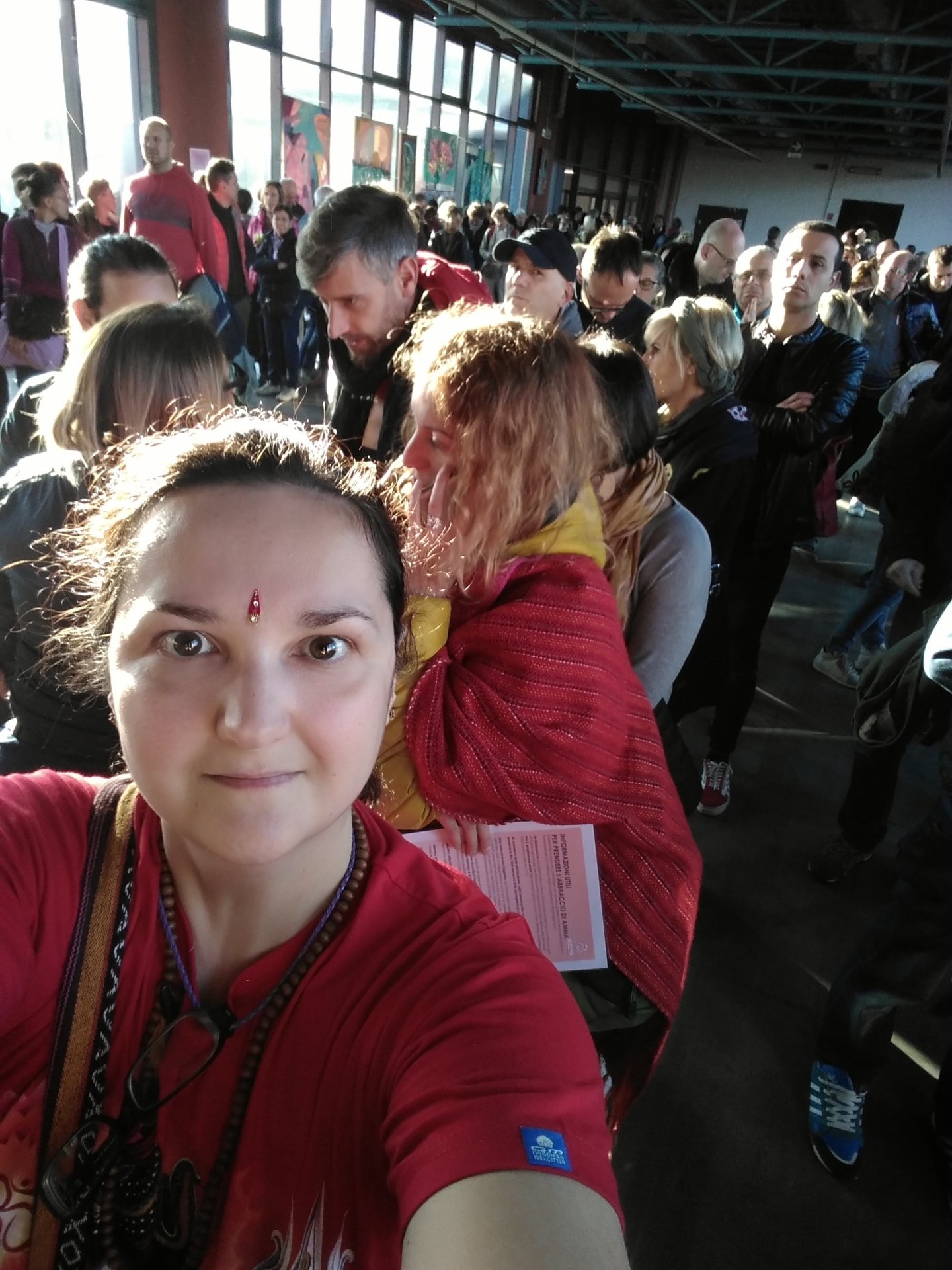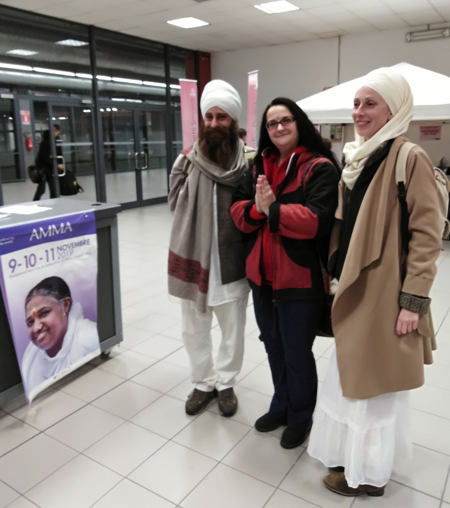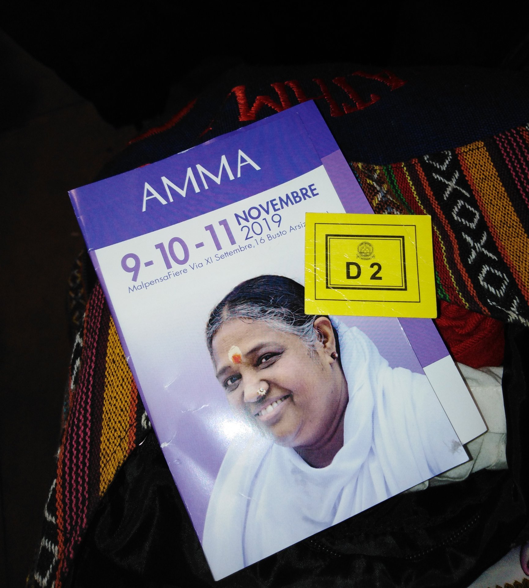 Sono dieci anni esatti che ho sentito parlare per la prima volta di Amma, una guru indiana che gira il mondo abbracciando le persone. Nel 2009, infatti, al Salone del libro di Torino, il paese ospite era l’India, per cui c’erano molti stand che proponevano testi di autori indiani. Fra questi, c’era quello che cura le pubblicazioni di Amma (il cui vero nome è Mata Amritanandamayi). Da allora l’ho seguita via internet e sapevo che ogni anno in novembre questa donna infaticabile è presente in Italia, dove migliaia di fedeli aspettano il suo ritorno. Anni fa la manifestazione si svolgeva a Sesto San Giovanni poi l’hanno spostata a Malpensa fiere a Busto Arsizio, ed è lì che mi sono recata il primo giorno dell’evento. Il programma dura tre giorni. Sapevo a cosa andavo incontro: una giornata infinita fatta di lunghe attese, di code estenuanti prima di poterla abbracciare.