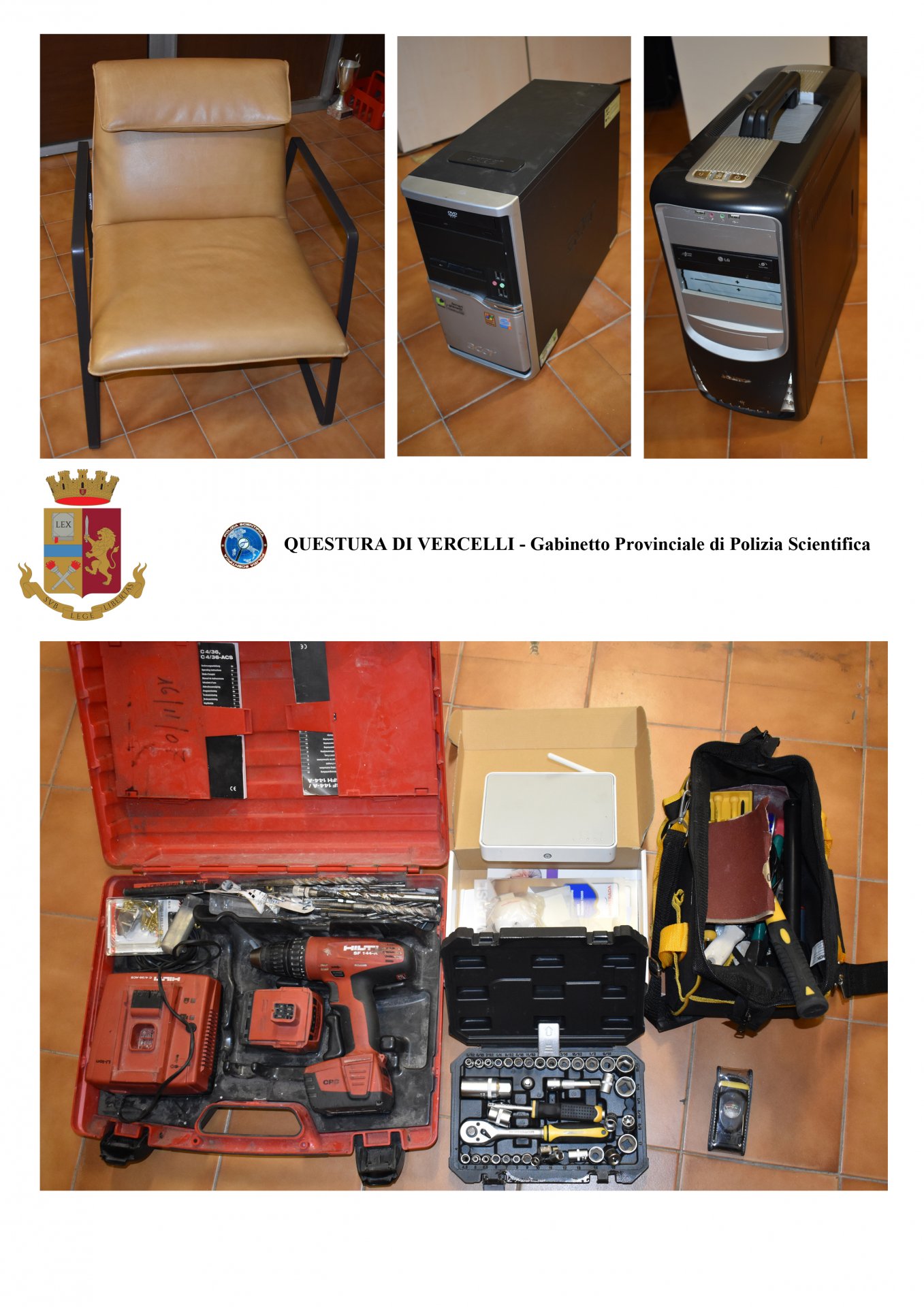 L’attività investigativa ha consentito di accertare la responsabilità penale dei ladri in almeno quattro differenti furti in abitazione: il primo perpetrato in Via Natale Palli, nel corso del quale sono stati asportati vari oggetti di valore; il secondo commesso in Via Marco Polo; in tale occasione, oltre a vari oggetti presenti nell’abitazione (gioielli, orologi e denaro contante), i malviventi si sono impossessati anche di un’autovettura che hanno poi tentato di rivendere; il terzo commesso in Via Piero Lucca, che ha consentito ai malviventi di impossessarsi di numerosi gioielli.