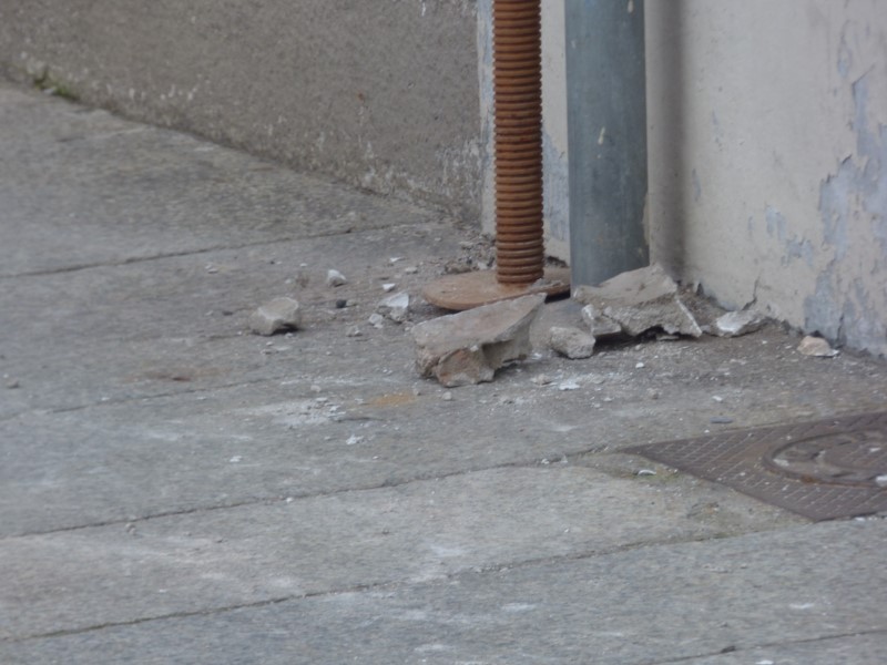 Caduta cornicione: Via San Paolo chiusa. Il crollo alla confluenza in corso Libertà, ampia area transennata.