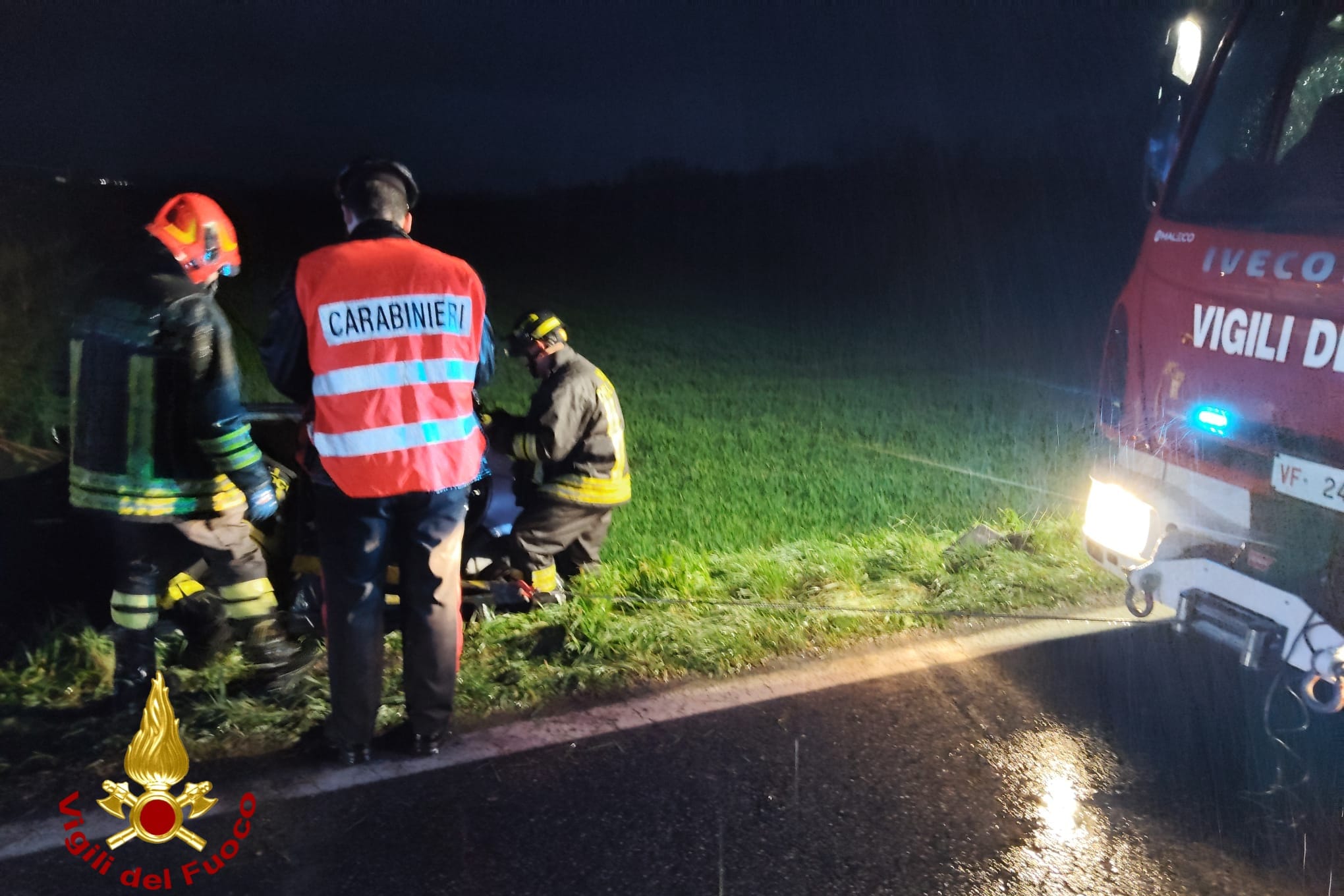 Al arrivo dei Vigili del Fuoco la persona coinvolta era ancora all’interno della vettura, per cui il personale intervenuto ha dovuto provvedere a stabilizzare l’autovettura in bilico su una riva ed in collaborazione con il personale sanitario all’estrazione in sicurezza, in seguito il ferito è stato trasportato all’ospedale di Chivasso