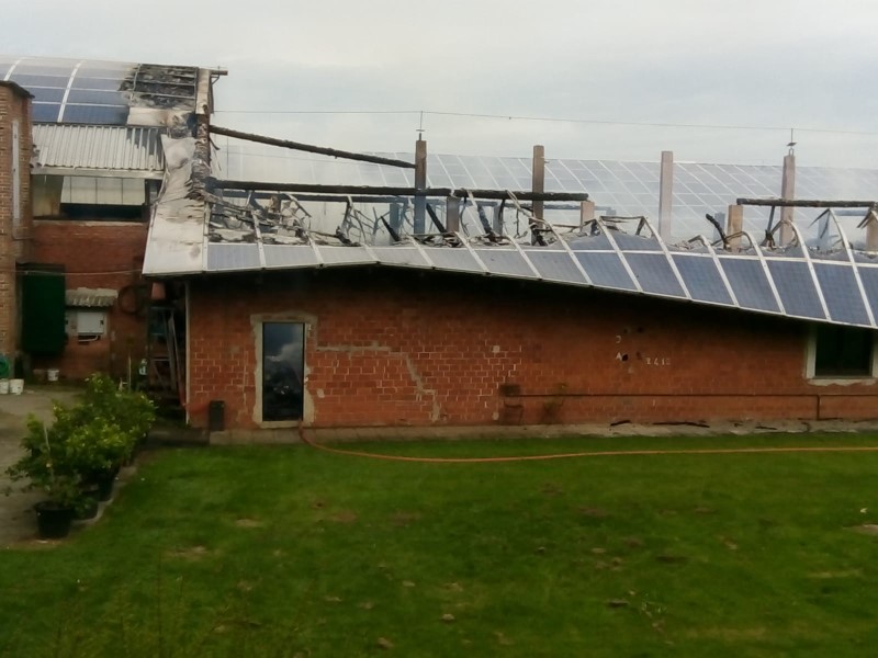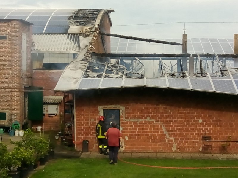 Il capannone è vuoto e non si registrano danni a persone. Gravi invece quelli alle strutture come si vede bene nelle foto.