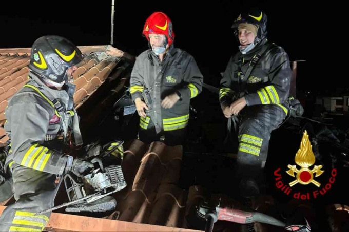 Grazie alla collaborazione sinergica di tutte le squadre dei Vigili del Fuoco è stato possibile limitare il rogo al tetto prima che si propagasse al resto dell’abitazione, gli abitanti sono stati evacuati e consegnati alle cure dei sanitari intervenuti sul posto.