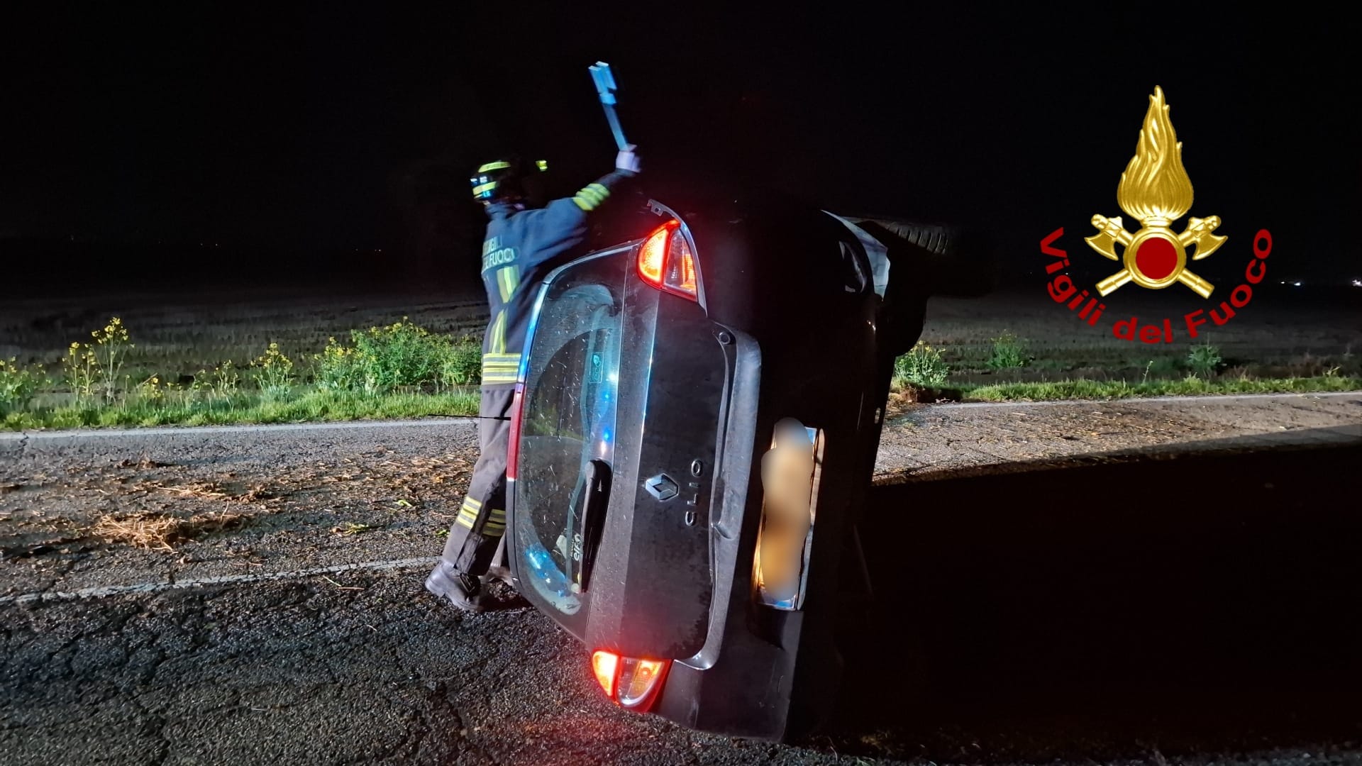 I Vigili del Fuoco hanno provveduto alla messa in sicurezza del veicolo e dell’ area interessata.