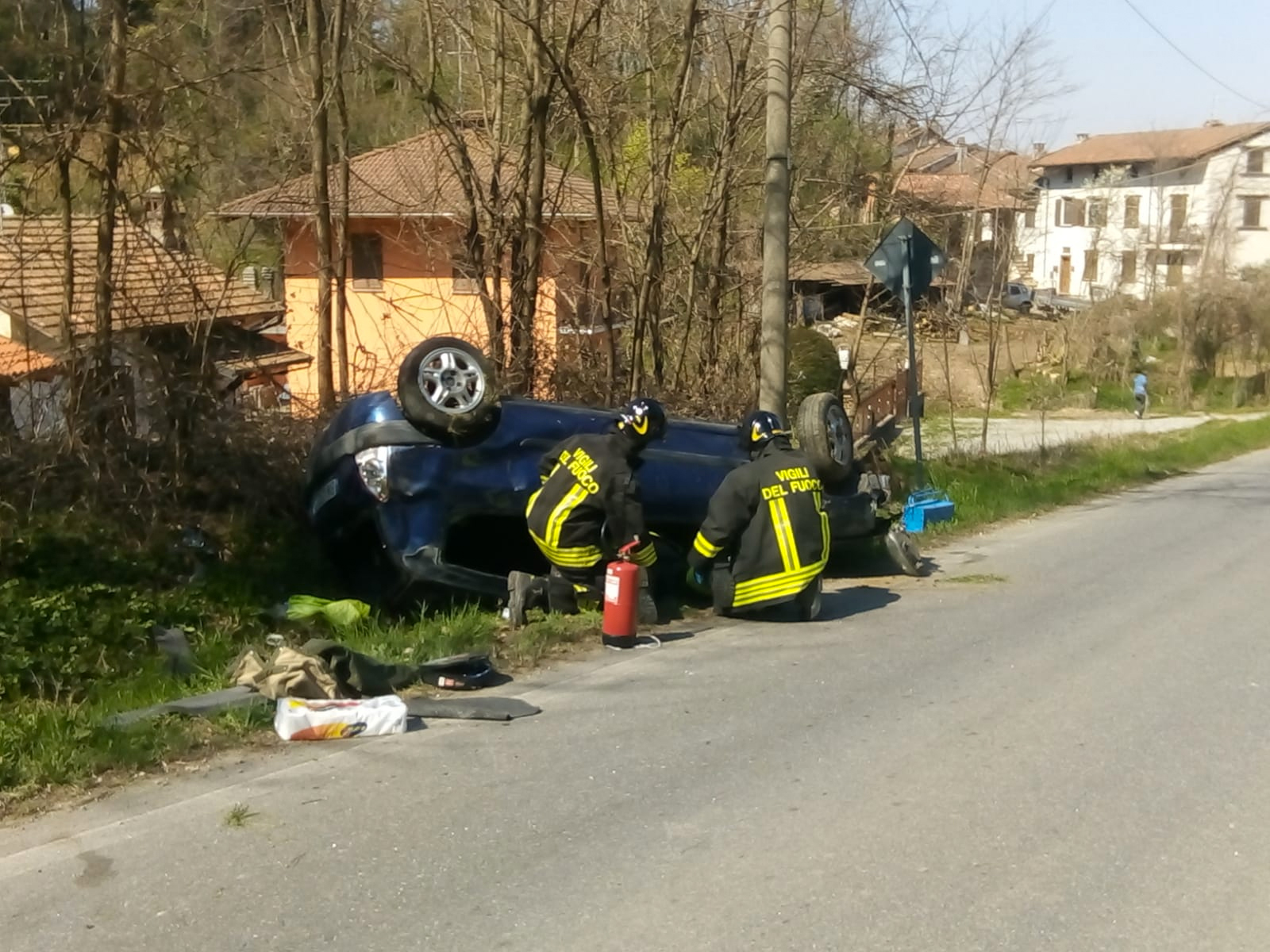 Auto capotta e prende fuoco tra Carisio e Santhià. E’ avvenuto intorno alle 13,30 di sabato 30 marzo sulla SP 3.