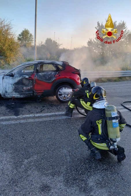 Incidente stradale causa incendio di una vettura ibrida. L’intervento dei vigili del fuoco
