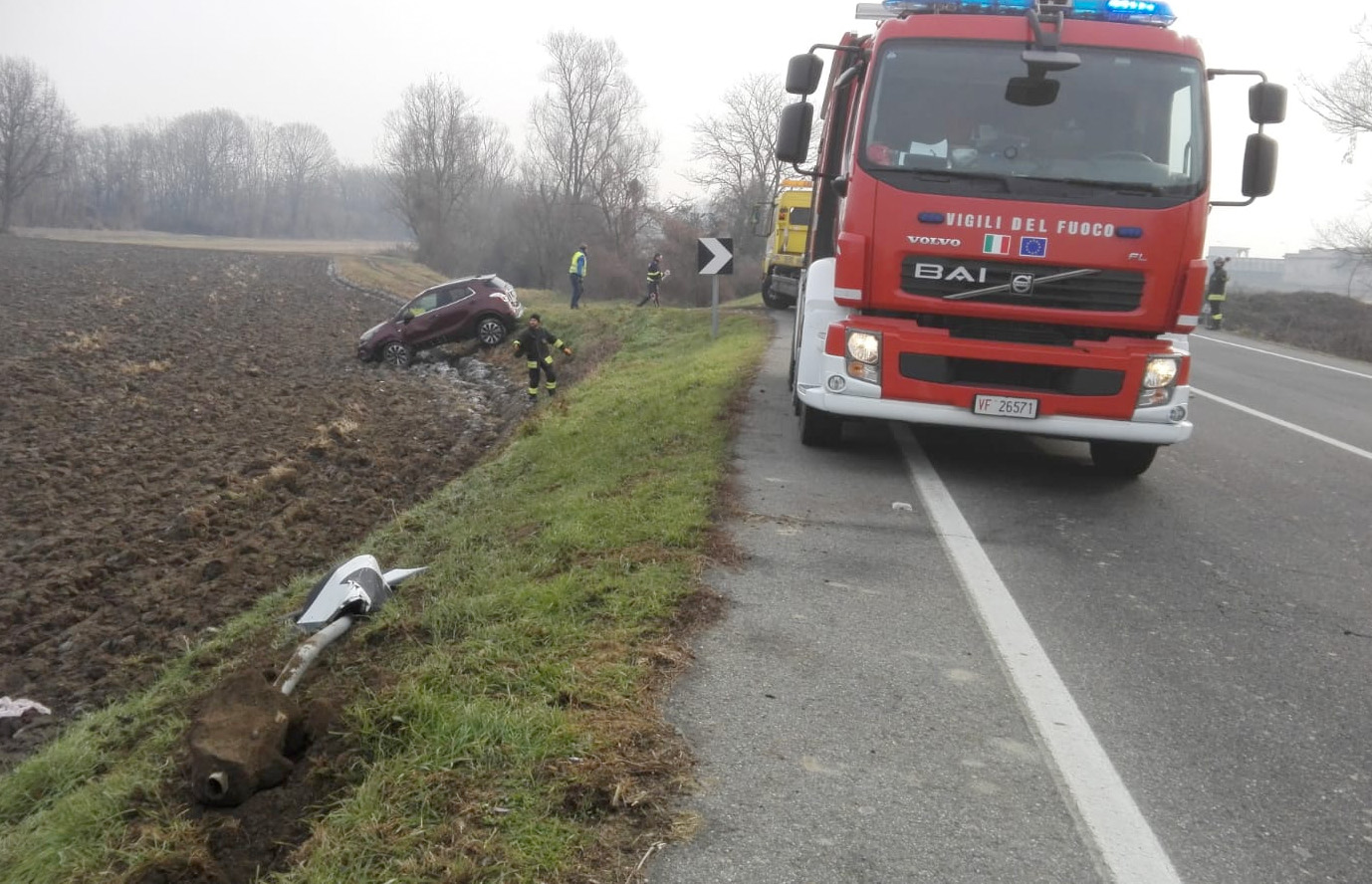 Incidente stradale sulla strada Trossi subito dopo Quinto Vercellese intorno alle ore 10,30 di martedì 8 gennaio 2019. Un’auto proveniente da Biella subito dopo la curva ha perso il controllo centrando un segnale stradale, autonomamente, è uscita di strada rovesciandosi e finendo in un campo.