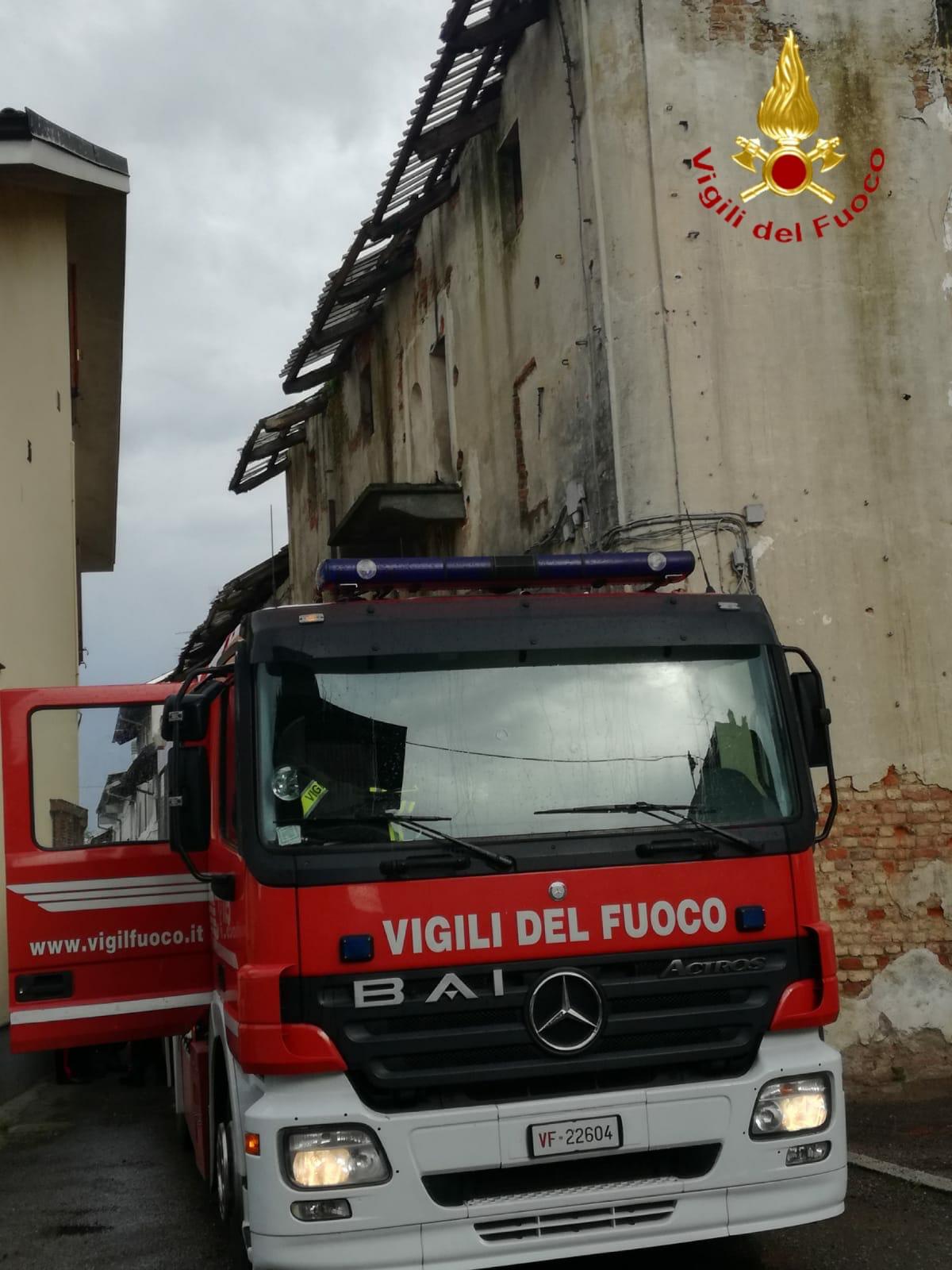 Livorno Ferraris: rischio crollo da edificio abbandonato. Stabile messo in sicurezza dal distaccamento dei Vigili del Fuoco del paese.