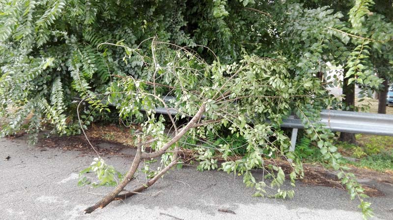 Qualche altro intervento sempre per messa in  sicurezza di alberi. Rami sono caduti ad esempio nel parcheggio della caserma Garrone (vedi foto sotto).