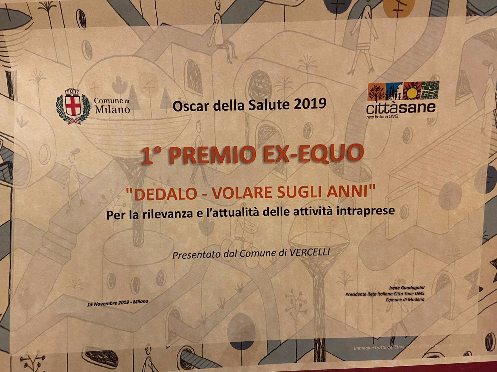 Il progetto “Dedalo, volare sugli anni” continua a riscuotere successi. Venerdì 15 Novembre il progetto – attivo sul territorio vercellese grazie a una collaborazione tra ASL VC, Comune di Vercelli e Università del Piemonte Orientale – si è aggiudicato il 1° premio ex-equo con il Comune di Venezia nell’ambito del concorso nazionale “Oscar della salute” istituito dalla rete “Città sane”.