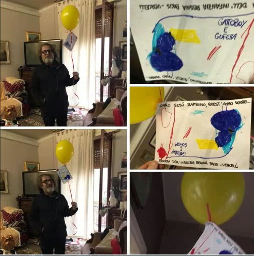 Mercoledì mattino scorso, i piccoli bambini dell’asilo Regina Pacis di Vercelli, accompagnati dalle maestre, hanno espresso i loro desideri lanciando in cielo dei palloncini colorati contenenti le loro letterine. La magia del Natale ha fatto sì che due dei numerosi palloncini siano giunti nelle mani di generose persone.