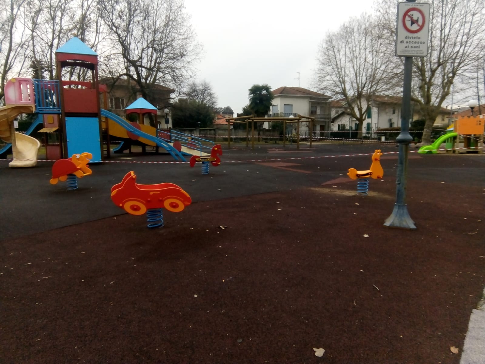 Parco Durandi Santhià: lavori in corso per riqualificarlo. Sistemazione in particolare dei giochi per i bambini e nuova illuminazione.
