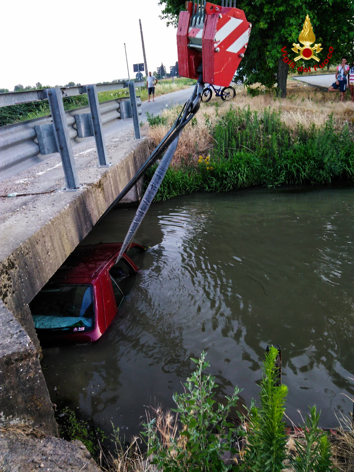 Ieri sera, venerdì 5 luglio 2019, intorno alle 20, una squadra dei Vigili del Fuoco del Comando Provinciale di Vercelli con a seguito l’auto gru, sono intervenuti sulla SP83 nel Comune di Pezzana per un incidente stradale che ha coinvolto una Citroen Saxo guidata da un uomo di 87 anni. L’auto dopo essere uscita di strada per cause ancora in via di accertamento è finita nella Roggia Molinara. L’automobiista è riuscito a uscire da solo dalla vettura e soprattutto illeso. I Vigili del Fuoco hanno provveduto al controllo della macchina, che non ci fossero altri occupanti e poi hanno provveduto al recupero del veicolo con l’autogru e la messa in sicurezza dello stesso. Sul luogo presente anche il Sindaco di Pezzana.
