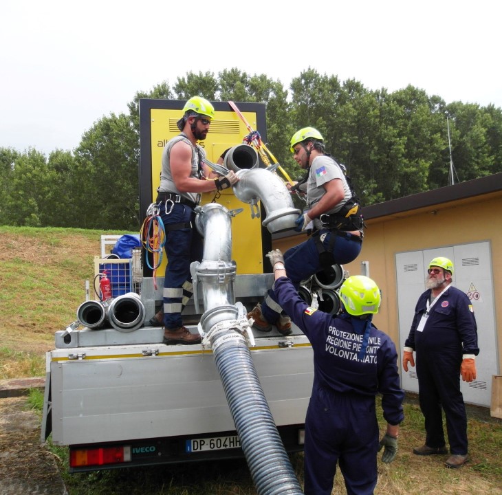 La Task Force antialluvione piemontese, coordinata dai funzionari della Regione, ha partecipato all’esercitazione con una quarantina di volontari, la gran parte vercellesi, 18 automezzi, una pala cingolata, un sollevatore a braccio telescopico e ben cinque potenti idrovore, una delle quali elettrica, con una capacità di pompaggio complessiva di quasi 1.700 metri cubi d’acqua all’ora – per avere un’idea di questa potenza basti dire che svuoterebbero una piscina olimpionica in poco meno di due ore – e quasi quattro chilometri di tubazioni per il trasporto dell’acqua pompata. Sono stati affrontati diversi scenari di intervento anche in collaborazione ad analoghi teams internazionali.