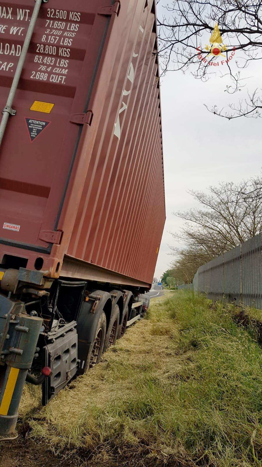 Questa mattina alle 9,30 circa, una squadra del Comando Provinciale Vigili del Fuoco è intervenuta a Vercelli, strada per Trino Vercellese per un camion con rimorchio fuoriuscito dalla sede stradale. L’intervento della squadra è servito a mettere in sicurezza il rimorchio dal peso di più di 25 tonnellate con un puntellamento di emergenza. La viabilità non è stata interrotta grazie all’ intervento della Questura di Vercelli e della polizia locale. Successivamente il mezzo fuoristrada è stato recuperato da una gru privata contattata dallo stesso proprietario.