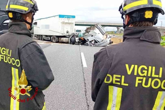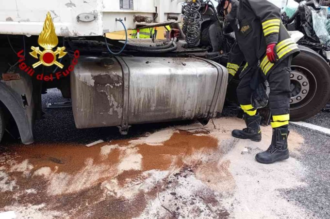 Schianto in autostrada: le foto dell’incidente fra due camion