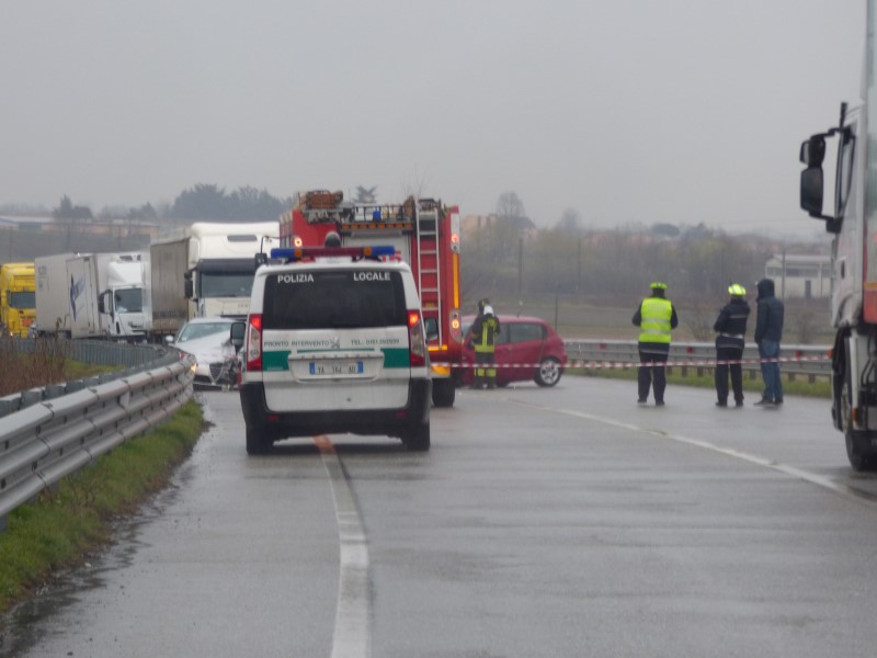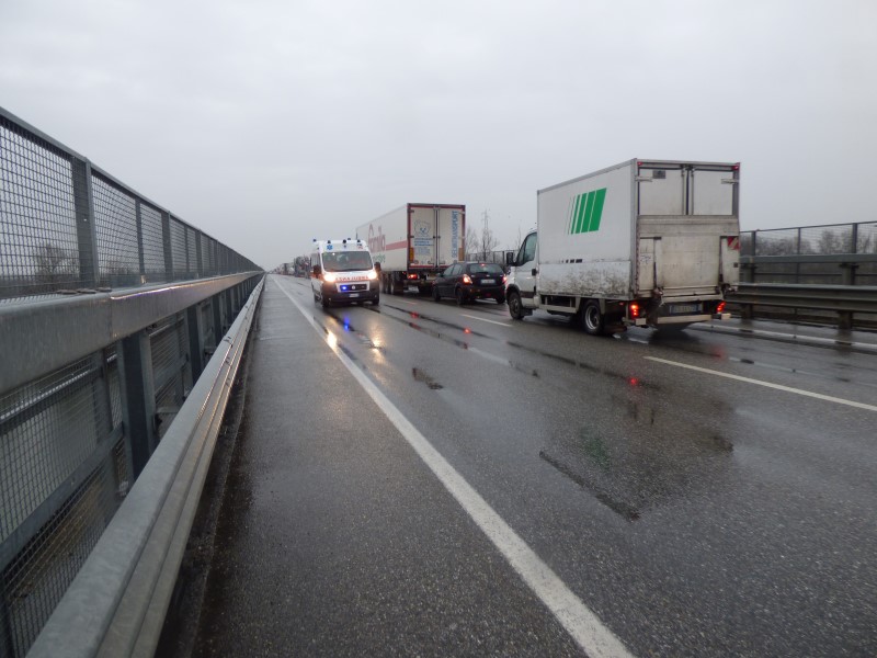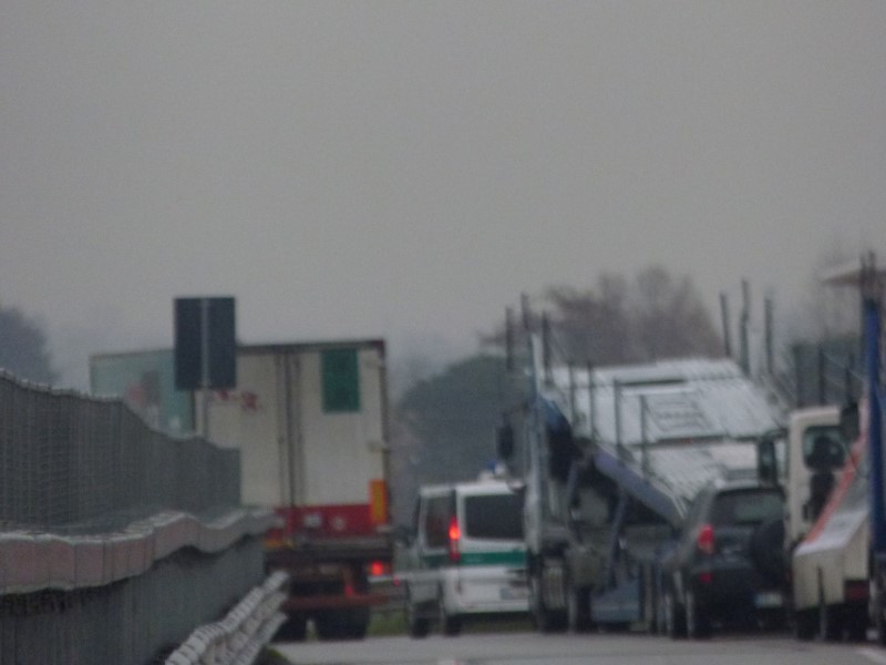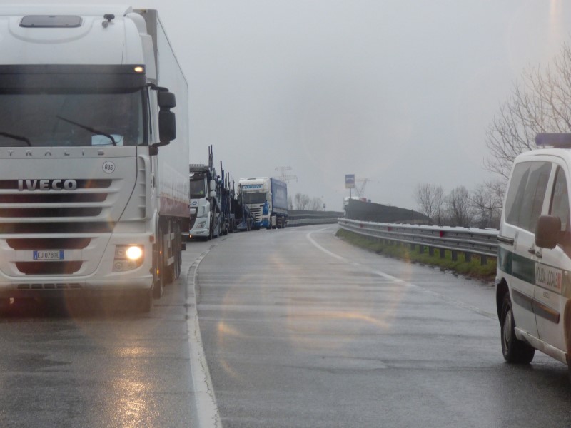 Alle ore 9,10 la strada era ancora chiusa al traffico. Grande fila di mezzi pesanti che sono rimasti bloccati non potendo fare manovra per disimpegnarsi.