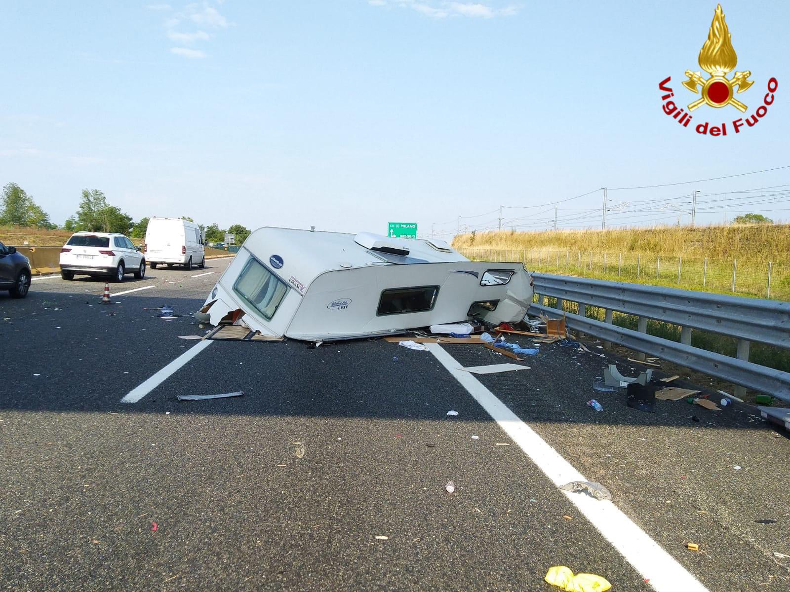 Oggi pomeriggio, sabato 20 luglio 2019, i Vigili del Fuoco di Vercelli sono intervenuti sull’autostrada A4 per un tamponamento che ha coinvolto due autovetture di cui una trainante una roulotte che è stata tamponata. Solo grande spavento e qualche lieve ferita per gli occupanti dei mezzi ma gravi danni ai veicoli. I Vigili del Fuoco hanno messo in sicurezza i veicoli coinvolti e l’area. Sul posto intervenuti anche la Polstrada, il 118 e i mezzi delle autostrade per la gestione della viabilità.