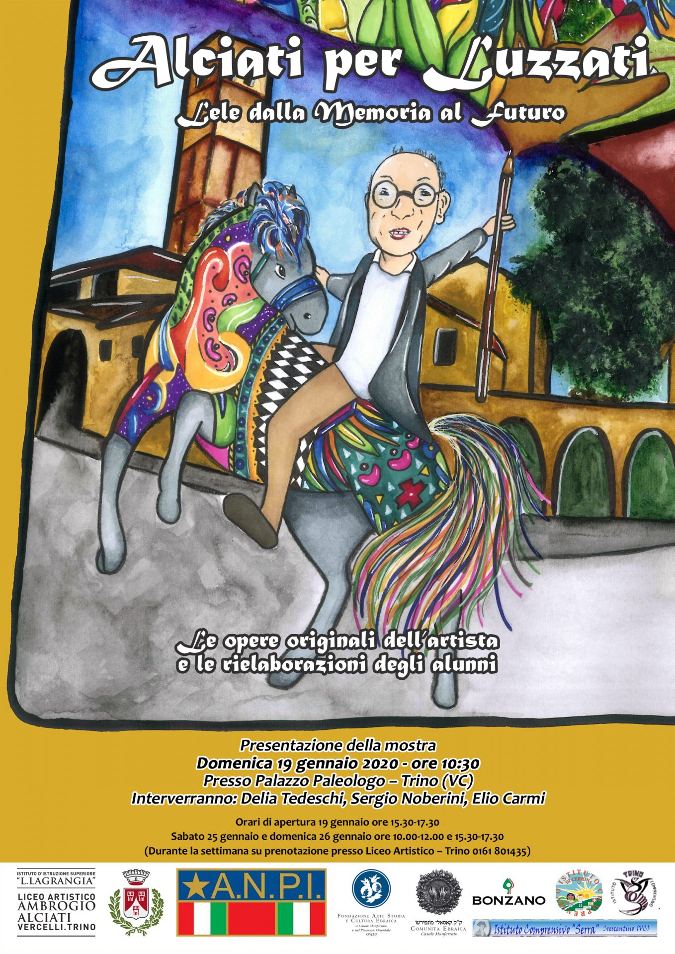 La mostra curata da Antonio Bordonaro con gli altri docenti della sezione torinese del Liceo Artistico Alciati di Vercelli. Gli insegnanti hanno coinvolto gli studenti nella ripresa, non solo pittorica, ma anche associata alla realizzazione e decorazione di oggetti, delle più celebri scenografie e opere di Luzzati. Da visitare al Palazzo Paleologo d Trino. La presentazione srà domani, domenica 19 gennaio alle 10,30 con gli interventi di Delia Tedeschi, Sergio Noberini ed Elio Carmi. La mostra sarà poi visitabile domenica 19 gennio dalle 15,30 alle 17,30; sabato 25 e domenica 26 gennaio dalle 10 alle 12 e dalle 15,30 alle 17,30; durante la settimana su prenotazione al Liceo Artistico di Trino contattndo lo 0161801435.