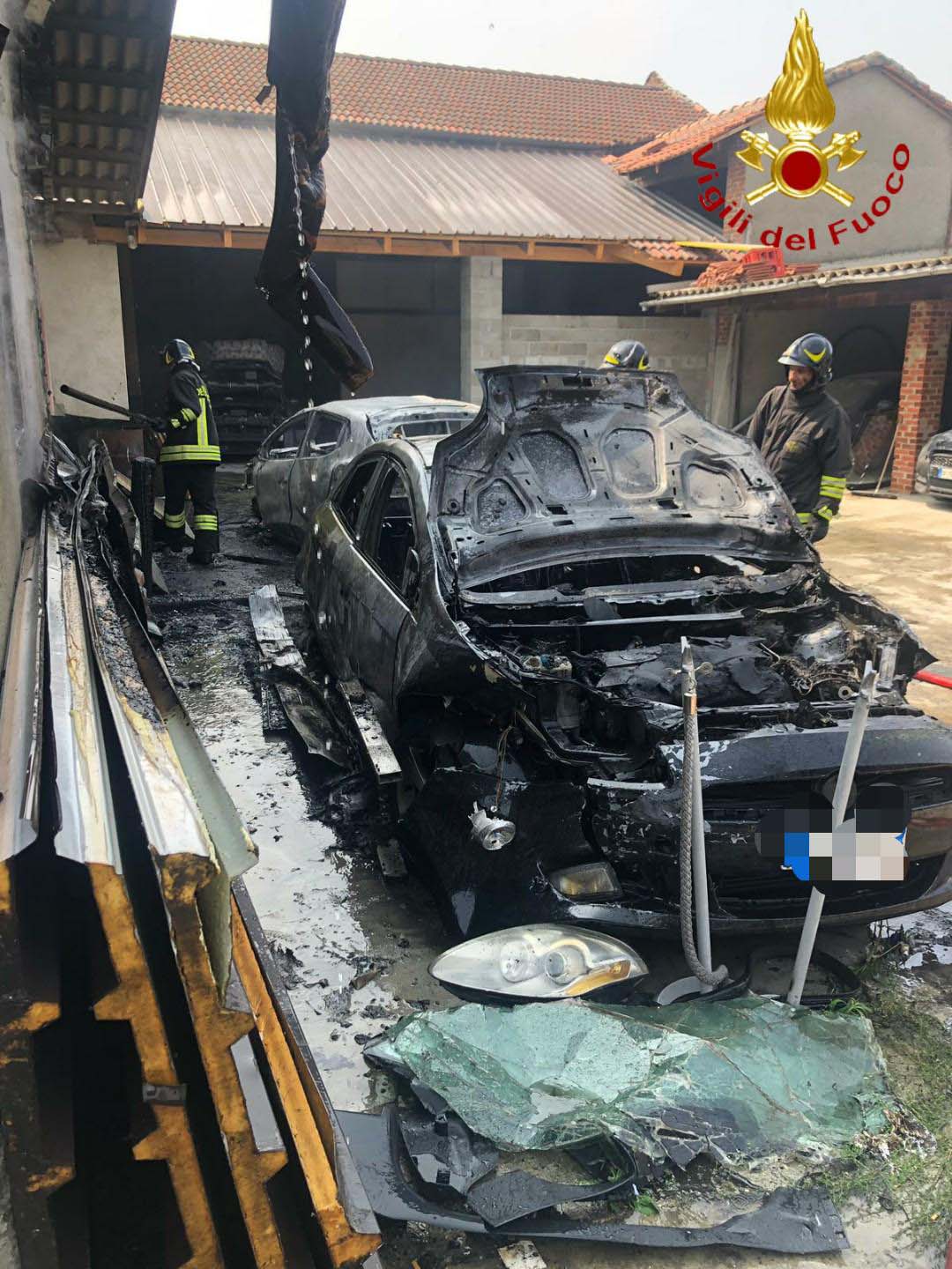 I Vigili del Fuoco di Livorno Ferraris e Santhià sono intervenute oggi, martedì 27 agosto 2019, alle 12,15 circa, in seguito a una richiesta di intervento per un incendio di due autovetture, di cui una alimentata a GPL, site all’interno di un cortile in via Aosta 8 a Tronzano Vercellese frazione Salomino. All’arrivo in posto le squadre di Livorno Ferraris e Santhià, hanno provveduto allo spegnimento delle vetture, completamente avvolte dalle fiamme, situate vicino ad un garage. Presenti in posto la municipale di Tronzano e i Carabinieri di San Germano.