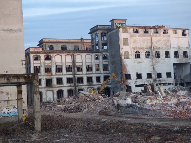 Va giù la Montefibre: foto della demolizione. Cominciate le operazioni per far posto all’area commerciale Novacoop.