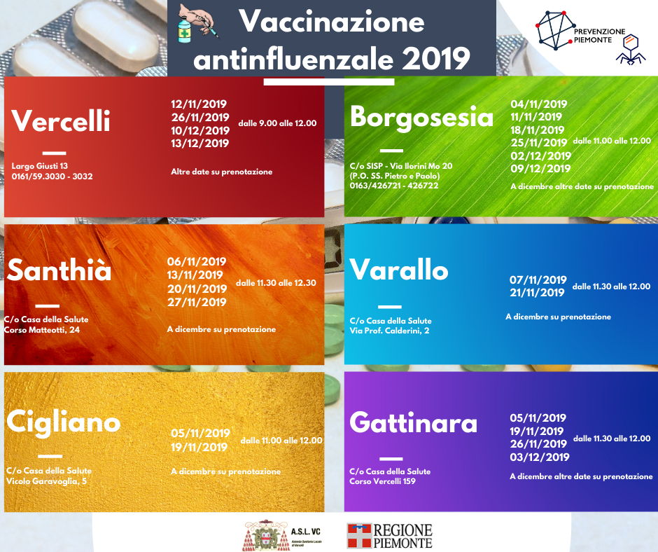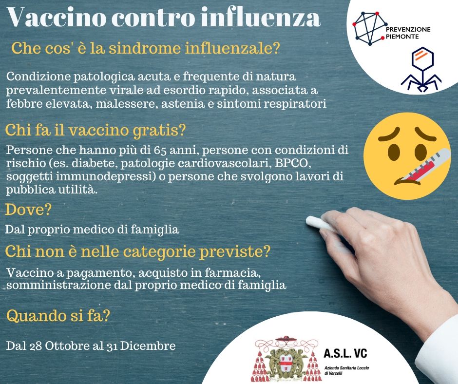 Vaccinazione antinfluenzale 2019: i consigli dell’Asl VC. Il via ufficiale alla campagna sarà il 28 ottobre e ci sono anche altri vaccini.