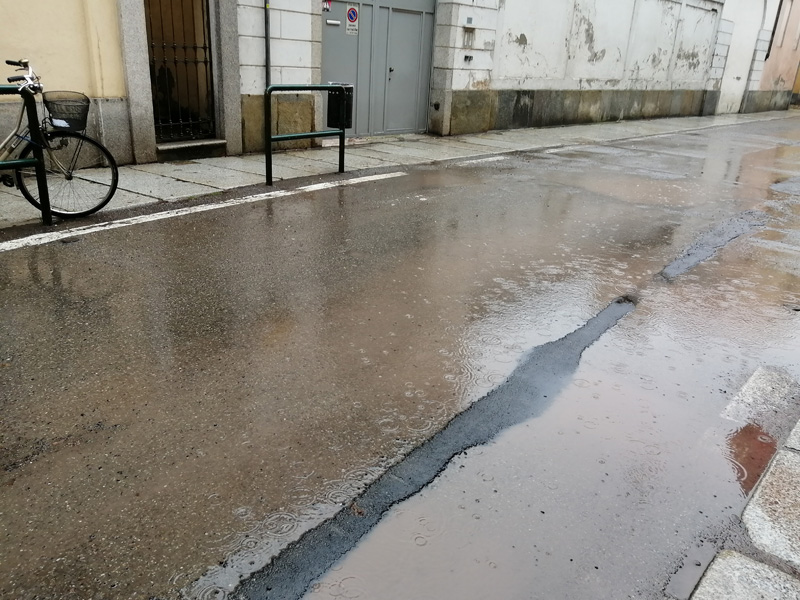 Non molto meglio in via Foa, dove abbiamo la sede, anche qui problema ormai epocale. Pendenze sbagliate? Porfido non in piano? Tombini che ricevono male? Sta di fatto che nei giorni di pioggia ben pochi riescono a fare il “percorso netto”, finendo prima o poi con i piedi nelle pozze… proprio come i cavalli nelle gare d’equitazione. Stessa cosa per piazza Massimo d’Azeglio.