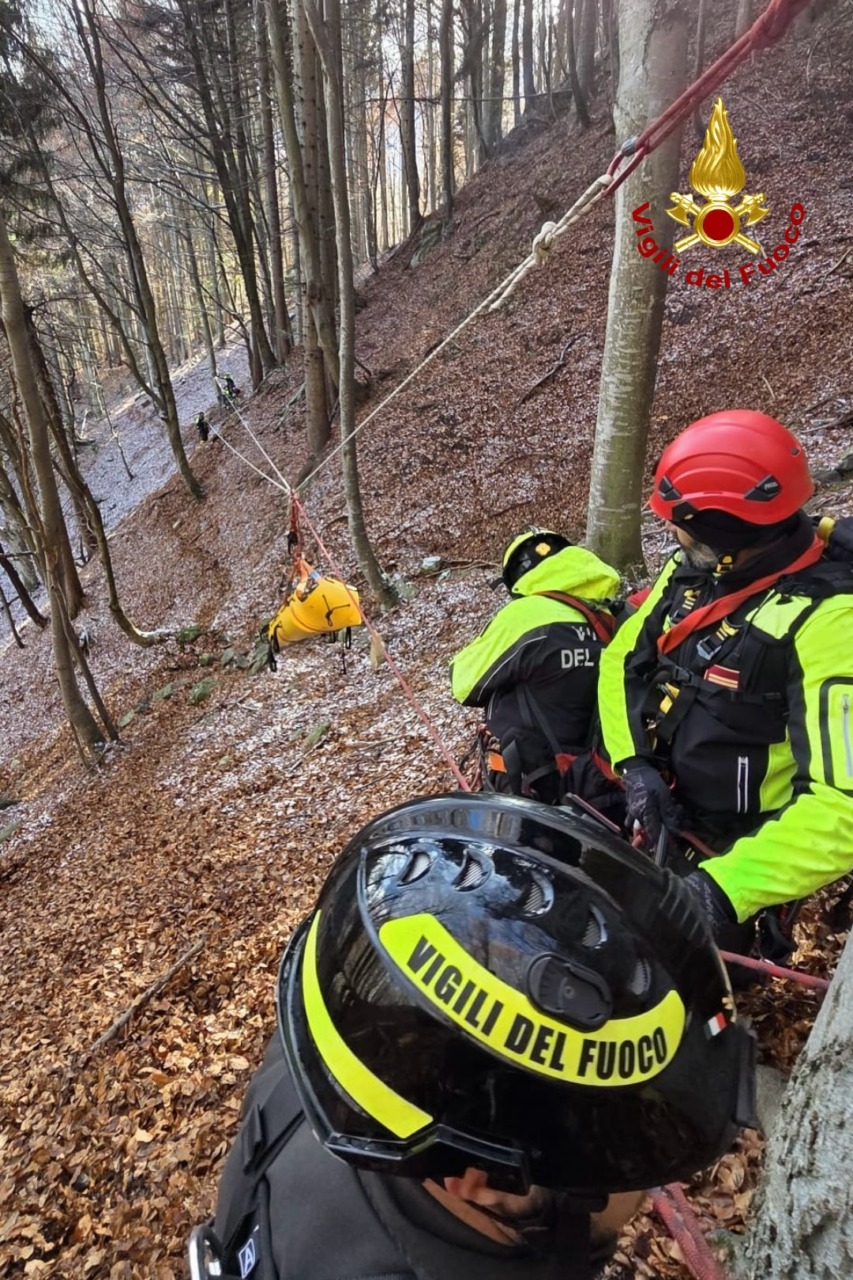 Lo scenario simulato prevedeva il soccorso di un escursionista disperso nei boschi nelle vicinanze dell’Alpe Lagone a circa 1300 metri di altitudine. In campo, la squadra ha effettuato la geolocalizzazione dell’infortunato mediante tecniche TAS (Topografia Applicata al Soccorso) e il successivo recupero con tecniche SAF (Speleo Alpino Fluviale). L’esercitazione era finalizzata a testare le procedure operative, all’affinamento e al miglioramento del sistema di risposta e soccorso nei casi di persona dispersa in zona impervia.