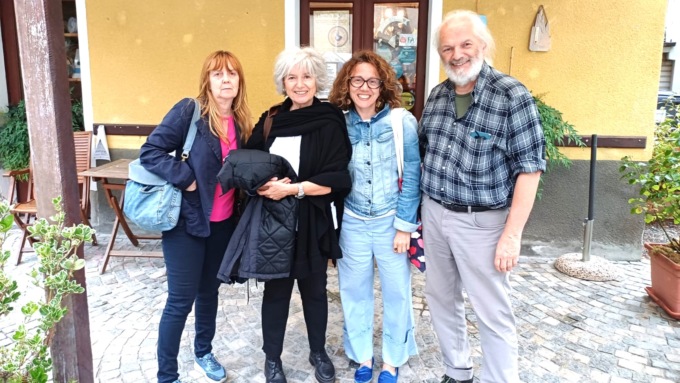 Alla presenza di un folto pubblico la presidente è fondatrice di Chesterton ha ripercorso le orme del cardinale Bicchieri e rievocato le vicende dello Scrinium Cardinalis e della fondazione della Basilica di Sant’Andrea. La gita a Fobello è stata anche l’occasione per festeggiare i 20 anni di Chesterton, anche se il compleanno cade tra qualche mese, e per gettare le basi di progetti futuro, alcuni dei quali ruotano intorno alla storia sabauda e al preziosissimo puncetto. “Siamo stati felici di incontrare molti rappresentanti della Pro Loco, presieduta dalla dottoressa Teresa De Filippi e li ringraziamo per la calorosa accoglienza e l’ottimo pranzo a Roy. Torneremo a trovarli e ora li aspettiamo a Vercelli”, spiegano i soci chestertoniani. Al termine della conferenza la presidente della Pro Loco ha omaggiato Gianna Baucero con una maglietta realizzata grazie a un dipinto di Federica Giacobino, la pittrice e illustratrice fobellina recentemente scomparsa. Gianna Baucero ha ricambiato il dono offrendo il suo libro ‘Magna Carta’ e Riso Carnaroli Acquerello, in omaggio a Piero Rondolino, amico fraterno della famiglia Baucero Candellone. Un modo per ricordare anche Ezio, il mai dimenticato marito di Gianna. Chesterton tornerà a Fobello ed è allo studio una gita sociale in pullman in collaborazione con Stat Viaggi.