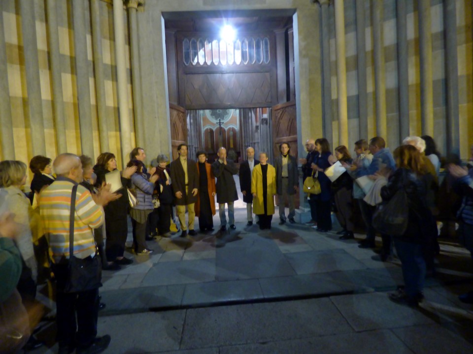 Insomma una serata memorabile che si è chiusa con il pubblico che sfilava fuori della basilica in processione passando attraverso la “porta del suono”, “Stabat Mater” attribuito a Jacopone da Todi e con un applauso finale lunghissimo e caloroso.