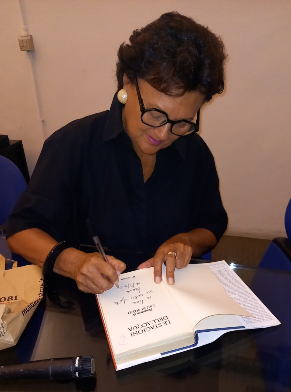 Angelo Fragonara ha riassunto i precedenti incontri e ha parlato del romanzo di Laura Bosio, che era stato pubblicato nel 2007, presentato nella Cripta di S. Andrea il 10 maggio 2007 dalla compianta Docente di Letteratura Italiana Giusi Baldissone e dall’allora Preside, Giacomo Ferrari, ambientato in una cascina, la Torricella, che propone un dialogo, in un marzo nevoso, tra due donne: una molto anziana Bianca, padrona e nume tutelare dell’azienda agricola e la ex nuora, voce narrante. Tra le tante storie che si intrecciano nel romanzo, raccontate con stili narrativi diversi, vengono minuziosamente ripercorse tutte le fasi della coltivazione, lavorazione e produzione del riso, descrivendo la risaia con i suoi abitatori, umani e animali, come il terribile grillotalpa o la nutria, con l’obiettivo di conoscere da vicino l’ambiente identitario della città. Al tavolo della presentazione è stato chiamato anche l’amico scrittore e critico cinematografico Tonino Repetto, per amplificare il dialogo con la scrittrice, che ha colto la suggestione dei due piani del romanzo: orizzontale per le risaie e verticale del paesaggio che si riflette a testa in giù. “Oggi questa terra di risaia non è più così: l’acqua viene messa e tolta, esiste anche la coltivazione in asciutta, il paesaggio è a chiazze, non più la distesa d’acqua che riflette, quella dei cieli capovolti che si specchiavano nelle risaie e che aprono e chiudono la narrazione, ma anche di un intero mondo capovolto, in cui si incontrano donne bizzarre”.