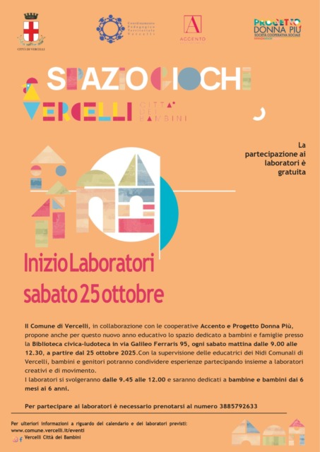 Da sabato 25 ottobre aprirà lo spazio giochi dedicato a bambini e famiglie. L’appuntamento mensile con i laboratori sarà sempre nella biblioteca civica di Vercelli in via Galileo Ferraris 95 dalle 9,45 alle 12.