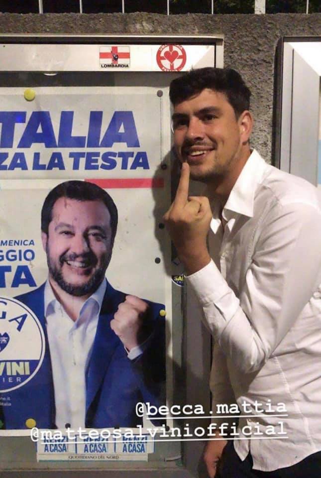 “Uno scatto sicuramente non condivisibile, apparso sui social media, quello dell’Assessore del Comune di #Santhià, nonché segretario del circolo locale del #PartitoDemocratico #MattiaBeccaro intento nell’esprimere il suo disappunto nei confronti del Senatore e leader della #Lega Matteo Salvini con modalità deprecabili e risibili.