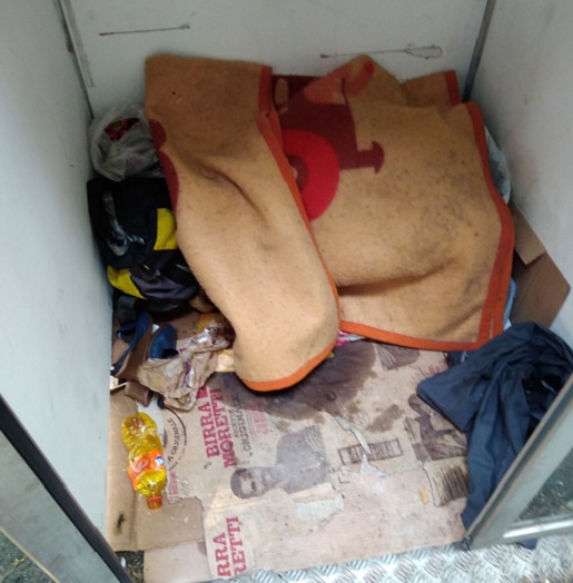 Le immagini si riferiscono all’ex cabina telefonica, ora diventata monolocale di fortuna, ubicata in via XX Settembre nella quale trovano riparo dei cittadini europei, usiamo tale definizione per rispetto e protezione della privacy di coloro che rimangono costretti ad usufruire di tale “alloggio”.