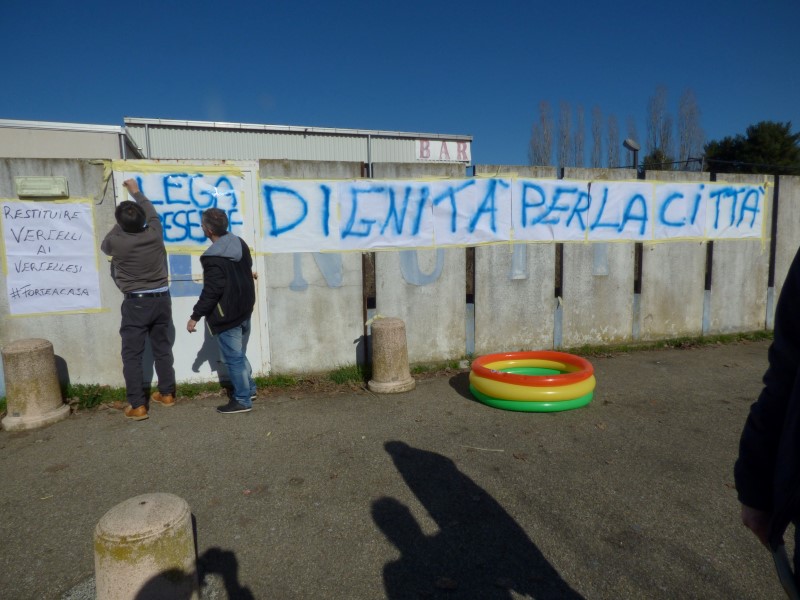 La Lega: “Vercellesi sempre senza piscine”. Sit-in di protesta davanti all’ingresso del Centro Nuoto.