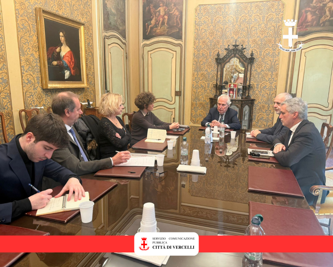 In Sala Giunta, l’incontro fra il sindaco Roberto Scheda, il vice Rettore per le Politiche territoriali, nazionali ed europee Mariachiara Zanetti, gli assessori Stefano Pasquino, Antonio Prencipe e Massimo Simion. Al tavolo della discussione c’era anche l’architetto Liliana Patriarca, dirigente del settore Lavori Pubblici