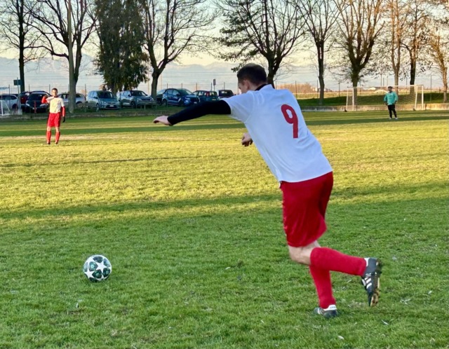 Sangermanese-Piemonte Sport 1-2, Calcio Csi 2025-2026: Fabio Niccolini (Piemonte Sport) alla battuta di un calcio di punizione