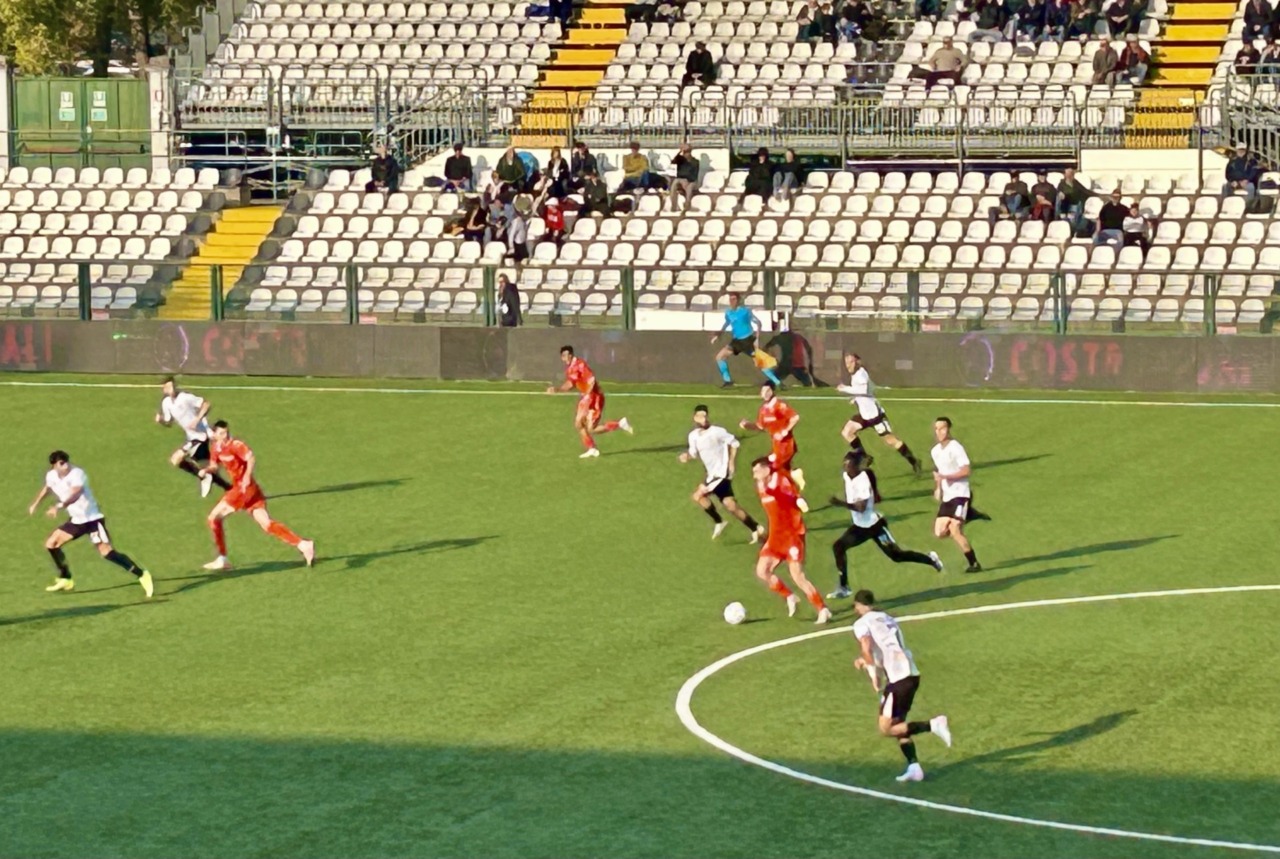 Nella gara del "Robbiano-Piola", valevole per la 13a giornata del campionato di Serie C, primo tempo concluso sull'1-1. Poi, dopo due miracoli di Livieri, le Bianche Casacche danno spettacolo, dilagano e si portano a 19 punti