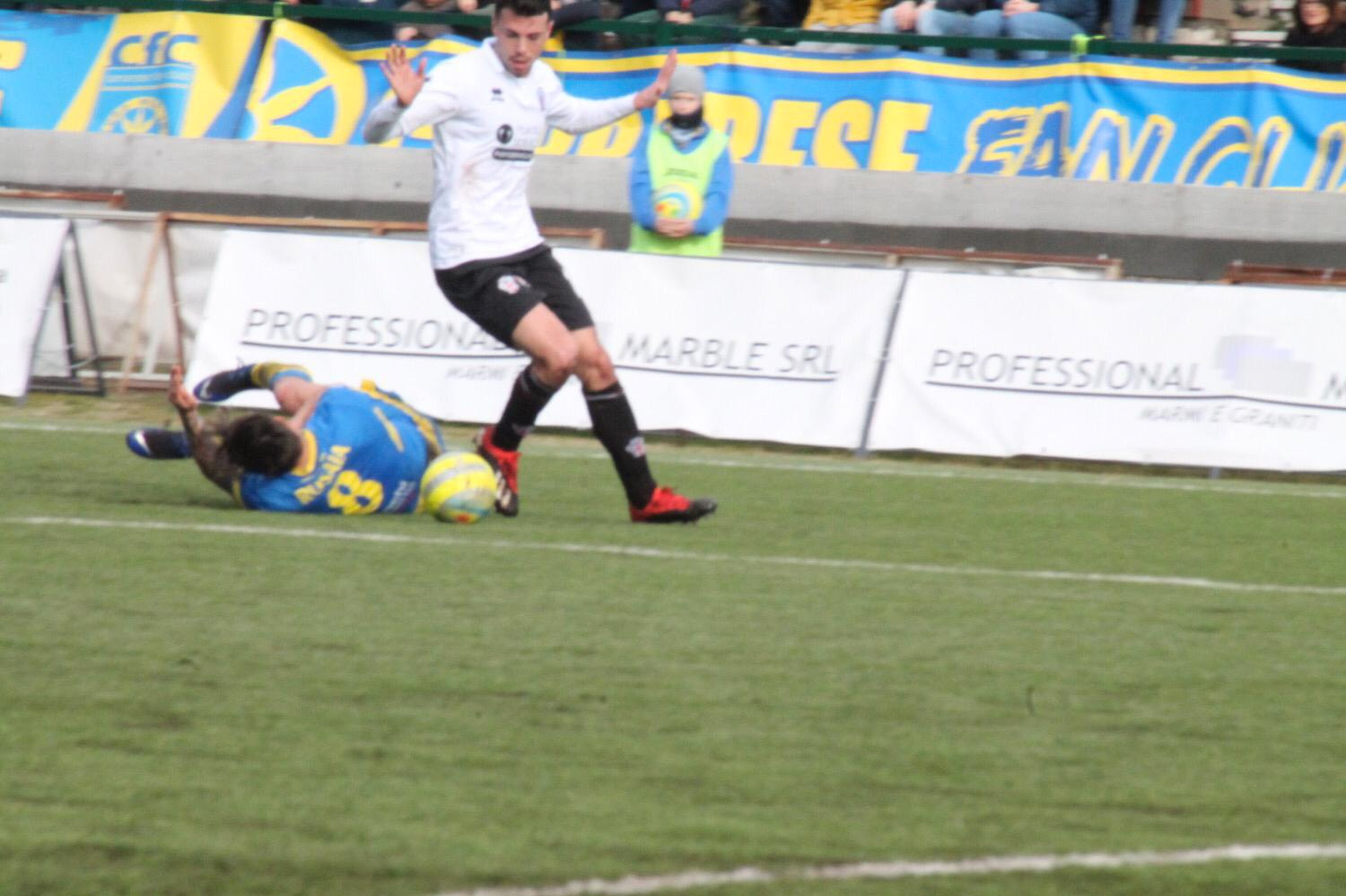 E’ una Pro Vercelli da trasferta. Grazie all’ottavo gol stagionale di Morra, quarto alla Carrarese, i leoni si dimostrano corsari in terra toscana. La squadra di Grieco (squalificato) si è dimostrata fin dalle prime battute molto solida difensivamente e ben disposta sul terreno di gioco, concedendo poco spazio all’undici di Baldini, nonostante sia il migliore attacco del campionato. Pro Vercelli molto pericolosa già nella prima frazione con un destro di Germano, che esce di pochi centimetri. Il match si ravviva intorno alla mezz’ora con un botta e risposta: prima la Pro con Mammarella poi i giallo-blu con Maccarone ma bravo Nobile. Al 31′ il gol partita: lancio di Berra per Morra, che scappa tra i due centrali e davanti a Borra lo batte sul primo palo. Le bianche casacche rimangono così ancora in vetta alla classifica con tre partite in meno rispetto alle inseguitrici.